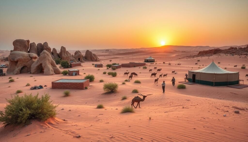Exploring Saudi Arabia’s rich culture is a key part of eco-tourism here. By connecting with local communities and trying traditional activities, visitors learn a lot. They get to appreciate the country’s heritage and the people who keep it alive.