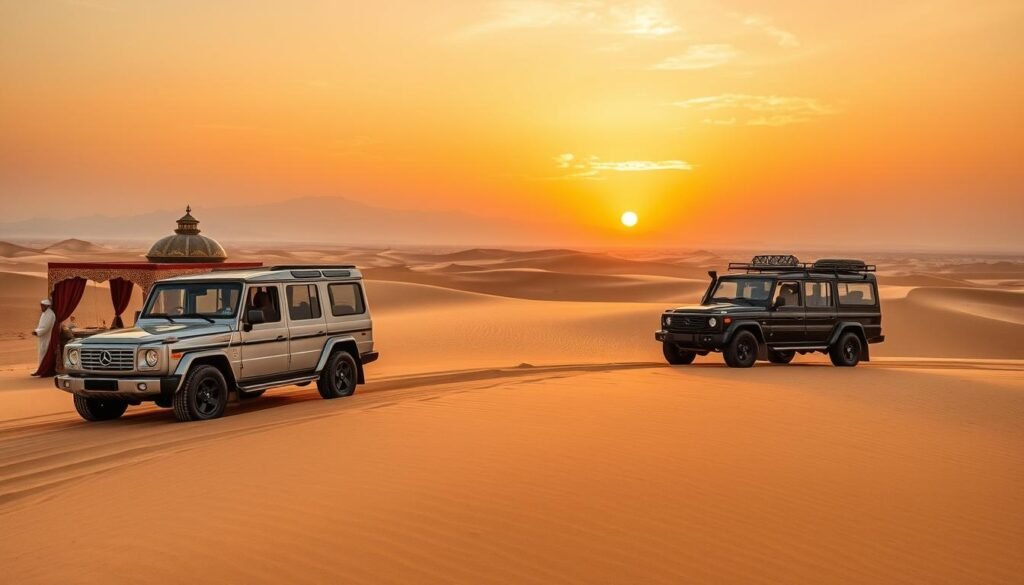 What are the transportation and personal Towardsur choices for a luxurious desert safari in Saudi Arabia?