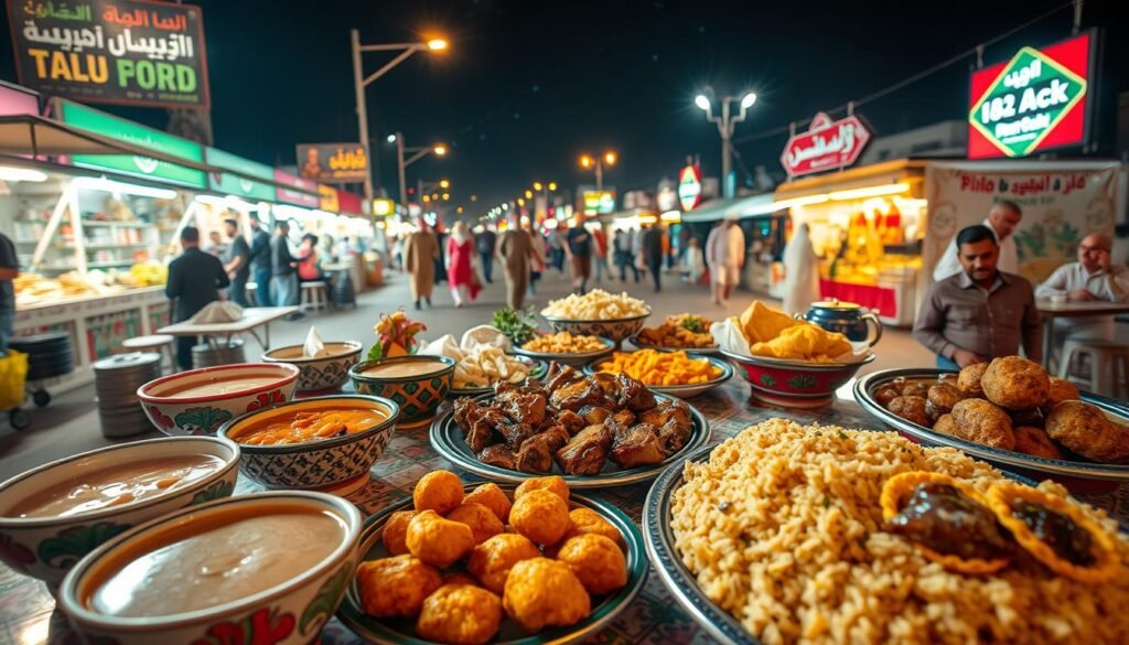 Locals love shawarmas, kabsa, and sweet desserts at night. You can find these dishes in downtown areas, residential spots, and street food markets. These places come alive after dark.